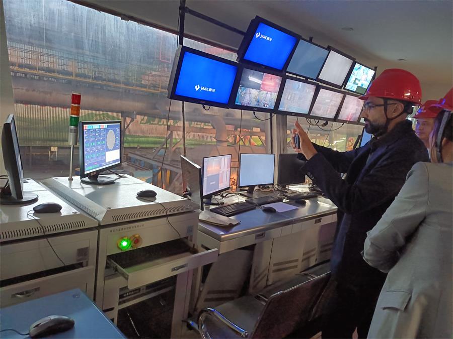 公司总经理代表公司对沙特客户的到来表示热烈的欢迎。在销售部门以及主要负责人的陪同下,客户参观了公司测量设备并实地考察了蓝鹏产品在南方某大型钢铁厂的实际产线应用,了解各类测量设备和测控系统相关知识。