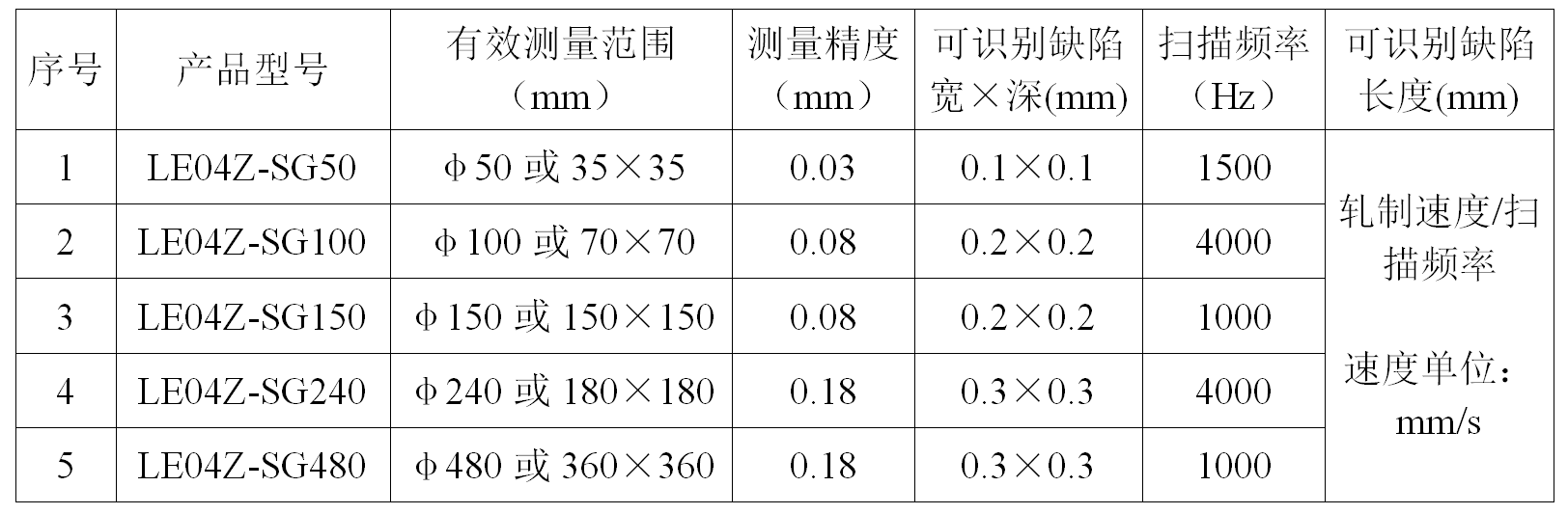 根据传感器型号不同,轮廓仪的型号及基本参数如下表所示: